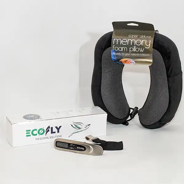 Miután befóliázta bőröndjét az EcoFly biztonsági bőröndfóliával, tegye a Ecofly Neck Pillow® – nyakpárnát egy kézi poggyászba, hogy kéznél legyen, amikor elhelyezkedik a repülőgépen.